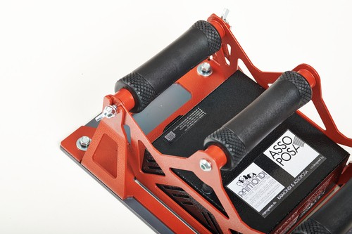 Elle n’a pas de chaussures mais porte tout de même une jolie semelle rigide anti-rayure en PVC qui assure une réduction d’effort et répartit la force de vibration sur tout le carreau.