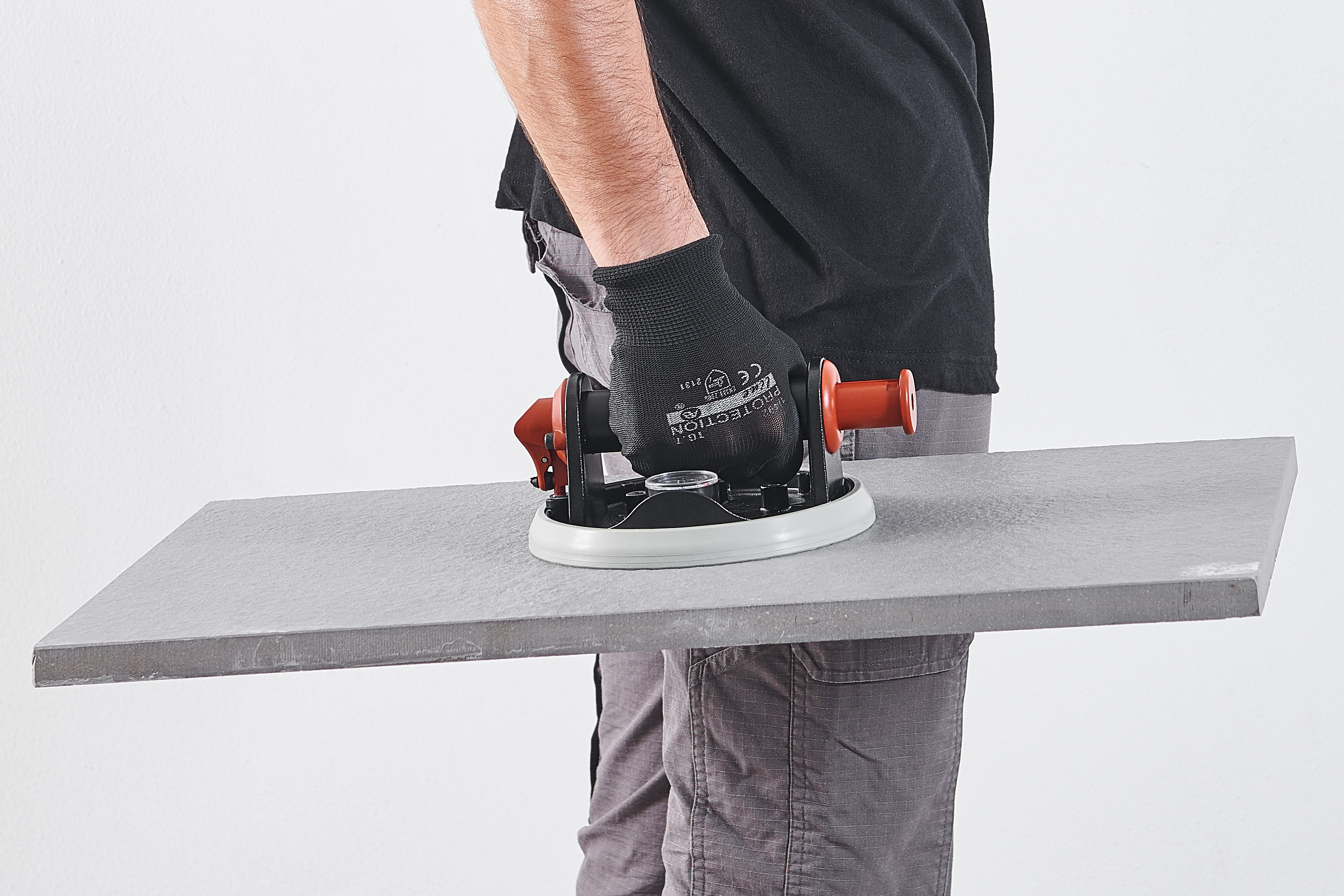 Le système de pompe permet de faire le vide et offre une forte adhérence sur le carrelage (supporte de plus fortes charges, jusqu’à 120 kg).