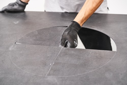 Avec le dispositif pour coupe circulaire, tu peux créer des angles arrondis sur tes carreaux grands formats, découper des cercles ou des demi-cercles. En bref, tu peux faire des trous de 22 à 100 cm de diamètre.