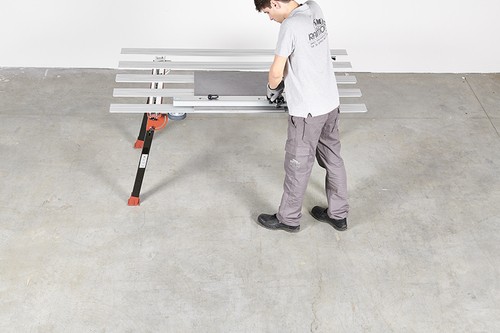 L'unité de coupe glisse sur le guide par l'intermédiaire de 3 roues en résine haute performance, chacune équipée de deux roulements. La molette de coupe de diamètre 20mm est dotée d'un revêtement spécial en titane qui lui confère une très grande résistance à l'usure. Elle est également équipée d'un roulement intégré qui garantit un glissement optimal, une précision et une effecacité extrêmes.