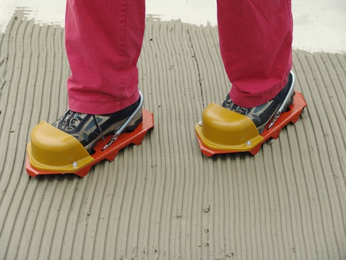 Patins pour marcher sur la colle pendant la pose, fixation du pied avec ressorts