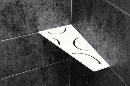 La tablette Shelf-E de Schlüter Systems s'intègre dans une paroi de douche carrelée. Elle permet de déposer les produits d'hygiène et autres accessoires, afin qu'ils soient à portée de main des utilisateurs. De forme trapézoïdale, elle est dotée de deux ailes de fixation, destinées à être insérées dans la surface carrelée.