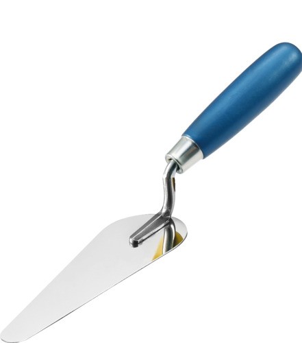 Pendant la pose des carreaux, il est courant que de l'excès de mortier-colle remonte entre les joints. La truelle langue de chat est utilisée pour éliminer cet excès de mortier-colle en lissant et en raclant les joints entre les carreaux. Grâce à ses bords biseautés et à sa forme spécifique, la truelle peut atteindre facilement les zones étroites entre les carreaux, assurant ainsi un nettoyage efficace et une finition lisse des joints.