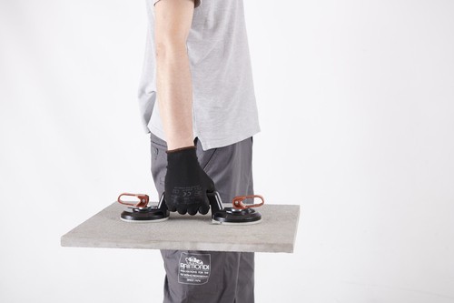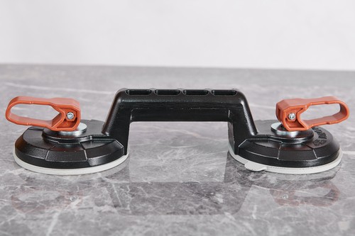 Deux ventouses pour t'aider à transporter tes carreaux jusqu'à 57 kg. Grès cérame, lisse, structuré, verre… La Biventouse s'adapte aux matériaux non poreux grâce à sa gomme spéciale en caoutchouc. La ventouse est un outil essentiel sur un chantier de carrelage, utilisée pour manipuler et transporter les carreaux avec facilité et sécurité.